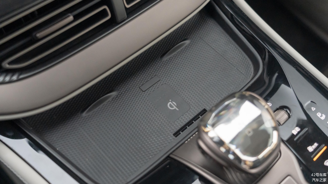 档把前方的无线充电位置只有一个,但最高支持 50 W Qi 协议无线充电。另外这里还与赛力斯问界车型一样配备了空调出风口,防止手机在充电过程中出现过热导致无法充电的情况。