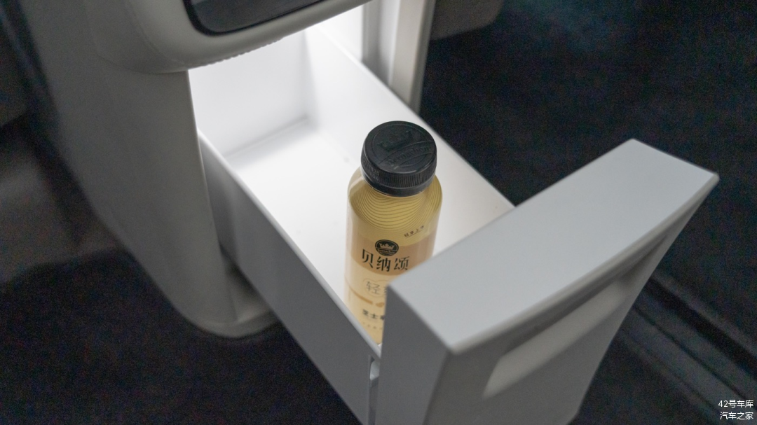 第二排右侧座椅的左侧有一块小桌板,展开时有两个杯架以及一小块置物区域,不用的时候可以收起来让出过道。