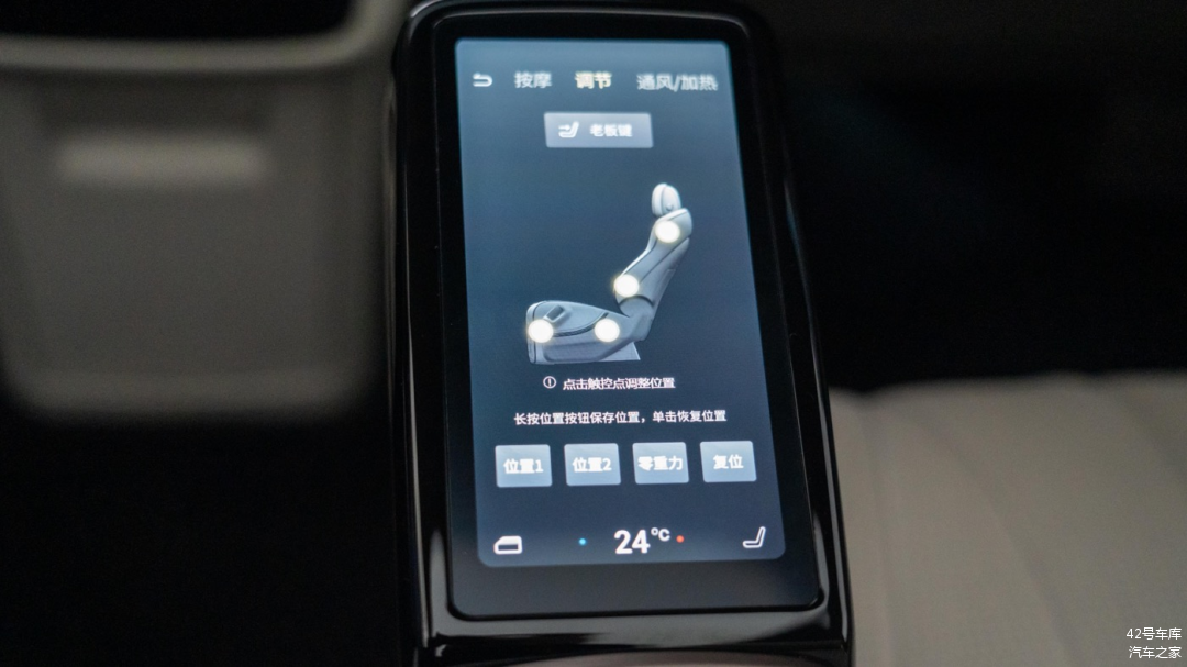 座椅控制没有物理按键,所有的功能控制功能都集成在了这块屏幕内。对第一次上手的人来说,需要花费一定的时间来学习如何使用,对老年人来说较为不友好。