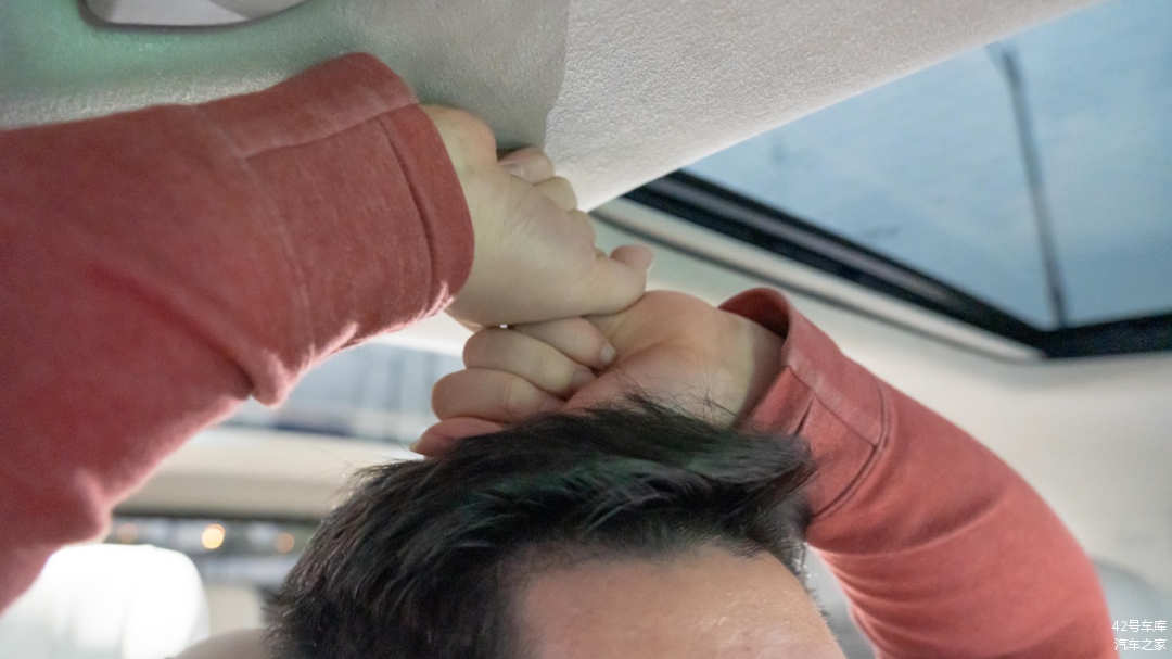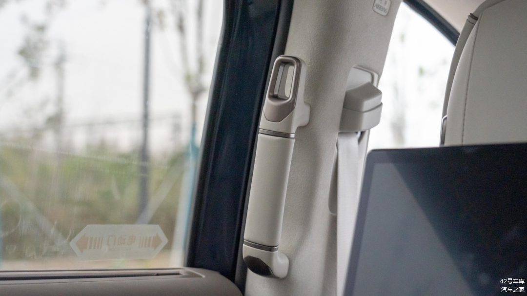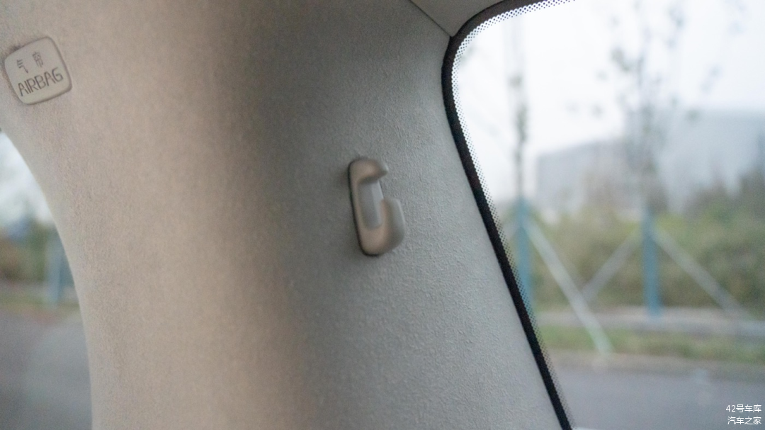 B 柱上设计了一个扶手,方便第二排乘客上下车,这点对老人尤其友好。扶手上方特意凸出来一部分,可以当作挂钩使用。