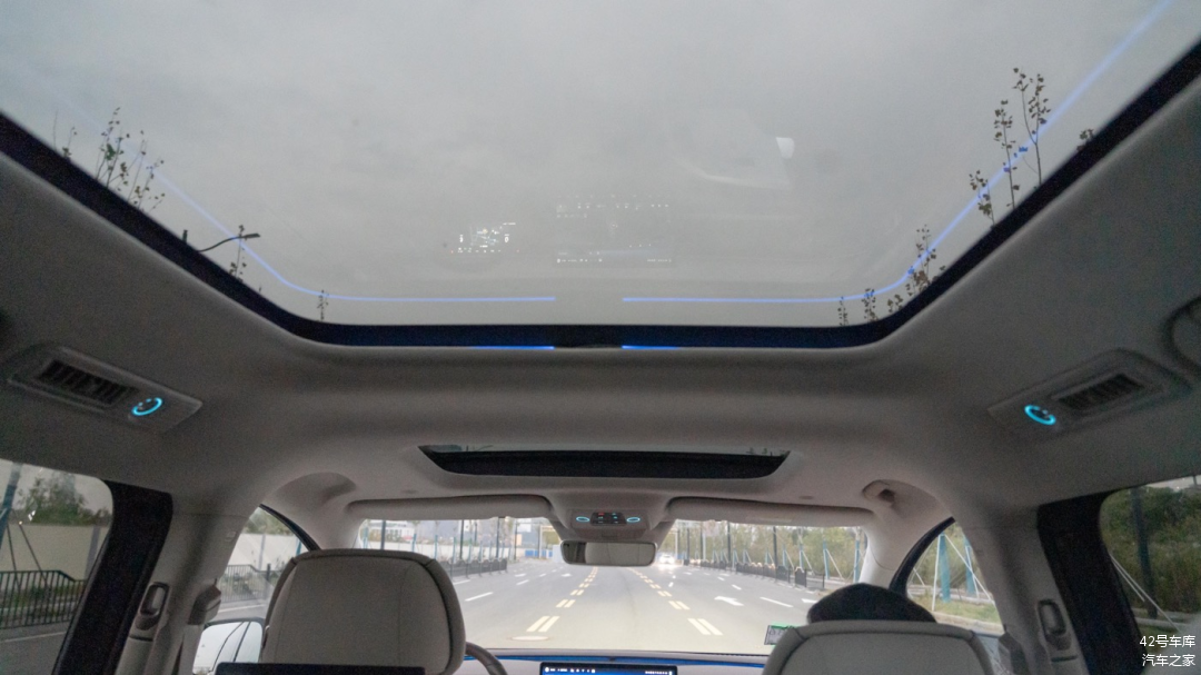 比较特别的是,第二排的天窗上居然也有氛围灯带,这个设计确实较为少见。