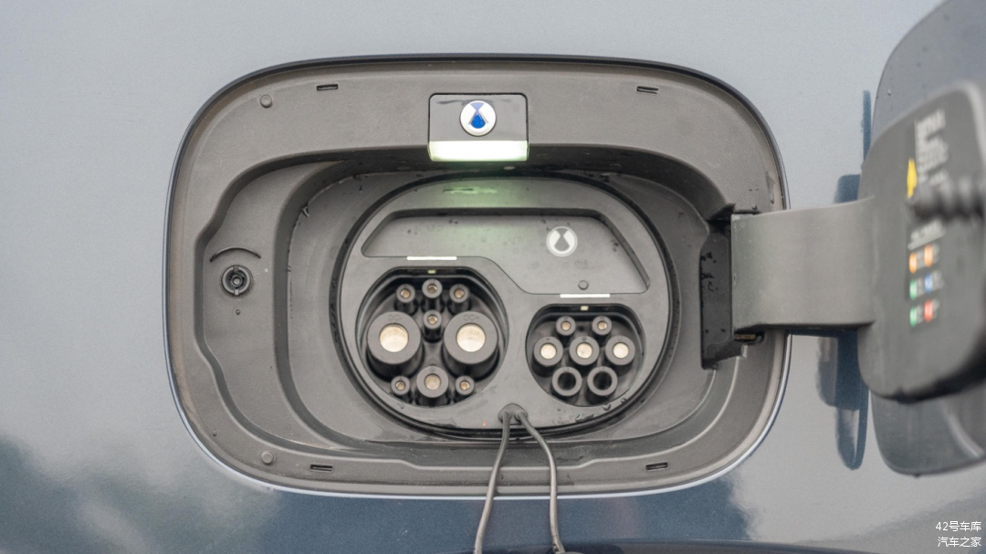 直流快充口和交流慢充口被放置在车身右后侧,盖板为手动开启,两个充电口上方都有保护盖,实测快充峰值功率达到 90 kW。