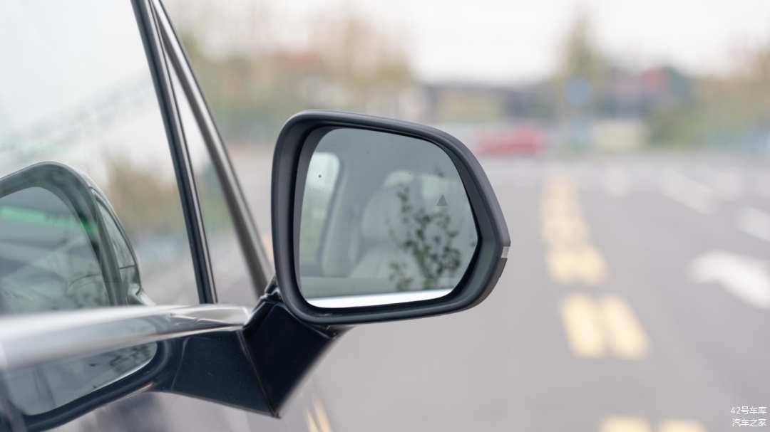 作为一款 MPV ,后视镜的尺寸足够大,基本能够满足日常驾驶中对两侧车道的视野需求,侧向环视摄像头位于后视镜的下方。