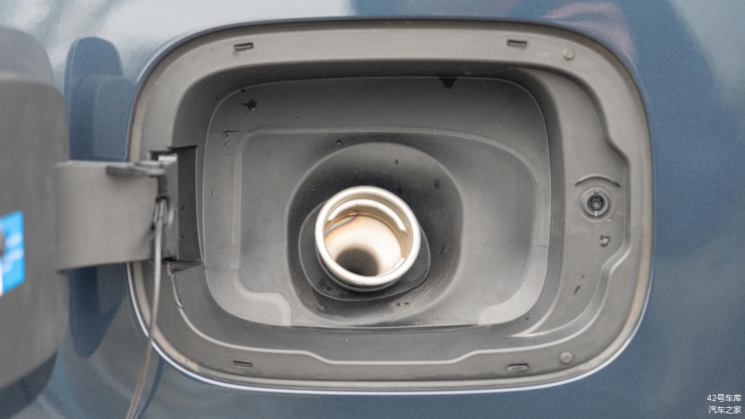 由于是混动版本,车辆左后方为汽油加注口。和比亚迪其他 DM-i 车型相同,腾势 D9 采用的也是 92 号汽油,在油价昂贵的今天多少能节约一些燃油费。