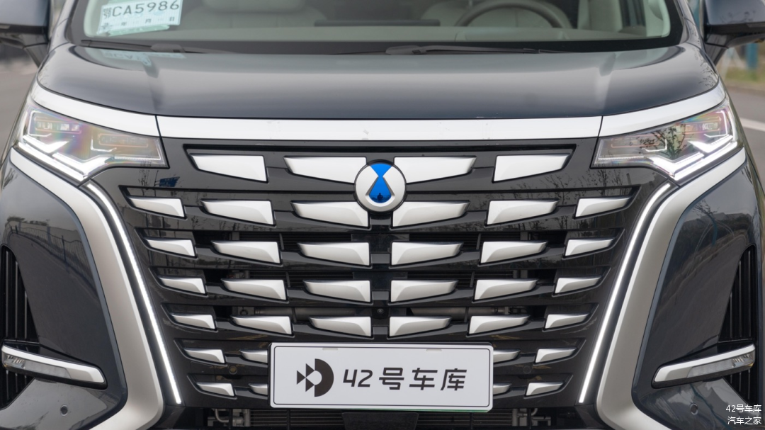 车头部分,或多或少都能看到一些埃尔法的影子,有一种豹头环眼的感觉。最大的不同是中网采用了不同的设计,腾势 D9 采用了类似龙鳞的设计,并且中网面积相比埃尔法要更大,显得气势十足。