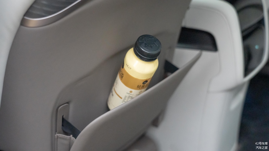 第一排两个座椅后方各有一个小储物袋,平时应该主要用于放置一些文件,放饮料之类的东西比较勉强。