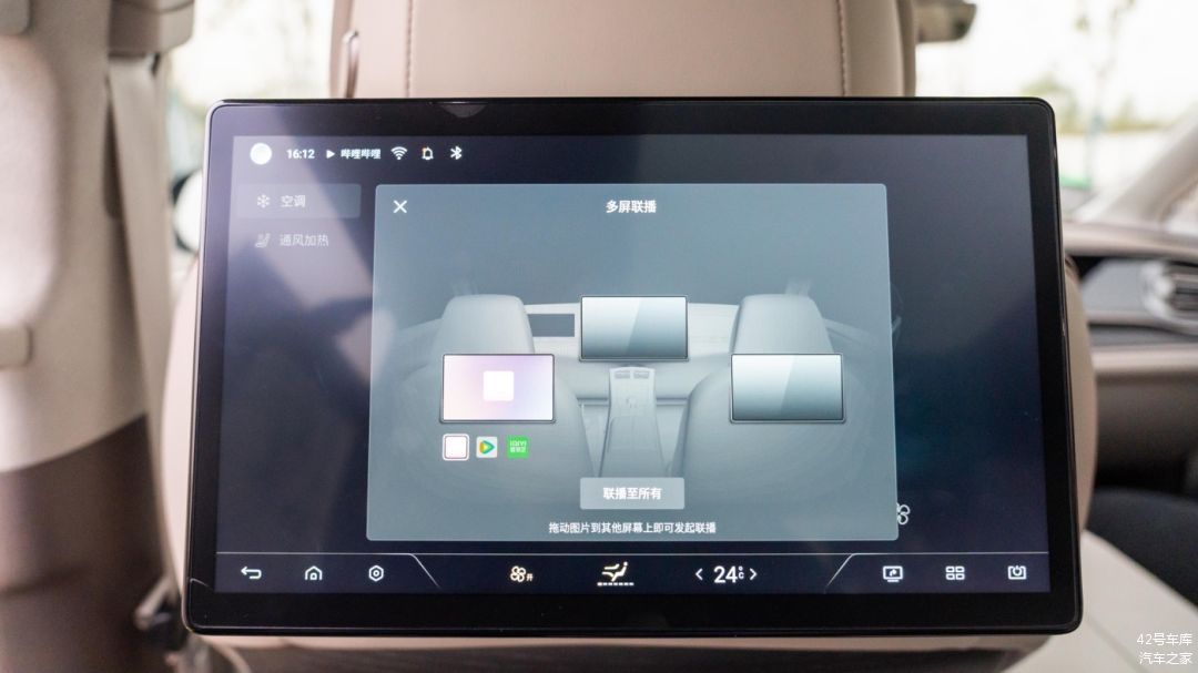 比较有意思的是这个多屏联播功能,不仅可以将后排的娱乐内容直接投屏到前排或另一个后排屏幕,还可以用于车内会议等商务场景。