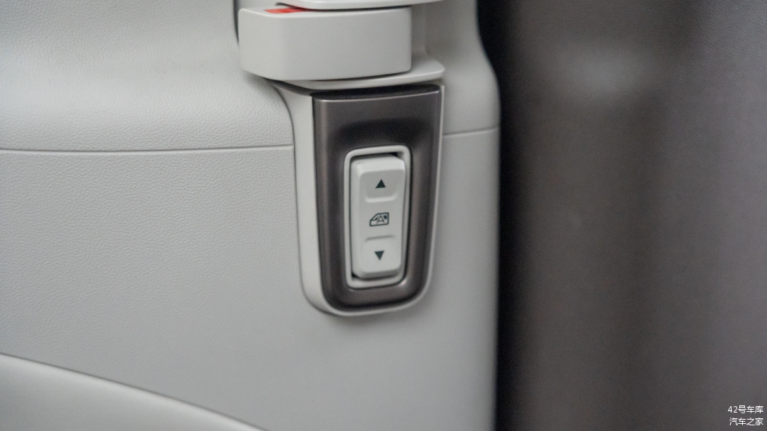 侧滑门内侧的门把手是前后拉动的设计,只需向前或向后拉动一下,就可完成开门和关门。第二排开关窗的按钮在门把手下方。