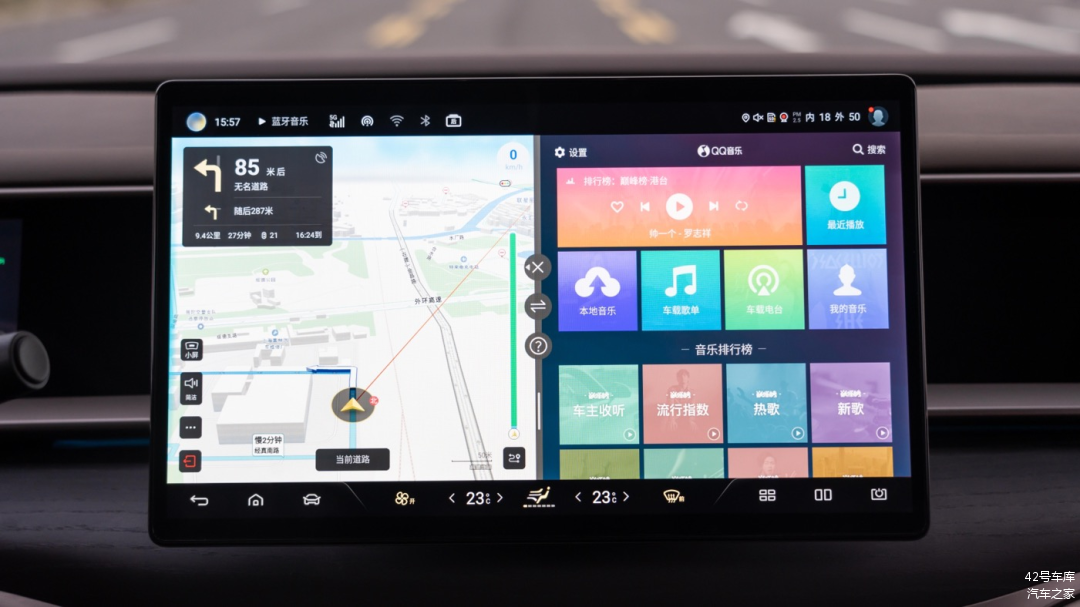 值得一提的是这块屏幕支持分屏功能,可以左侧显示导航信息右侧显示娱乐信息,这样主驾和副驾需求两不误。