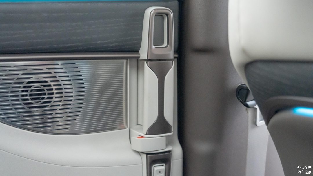 第二排门板上的丹拿扬声器比第一排更大了,但金属罩同样有强烈的割手感。