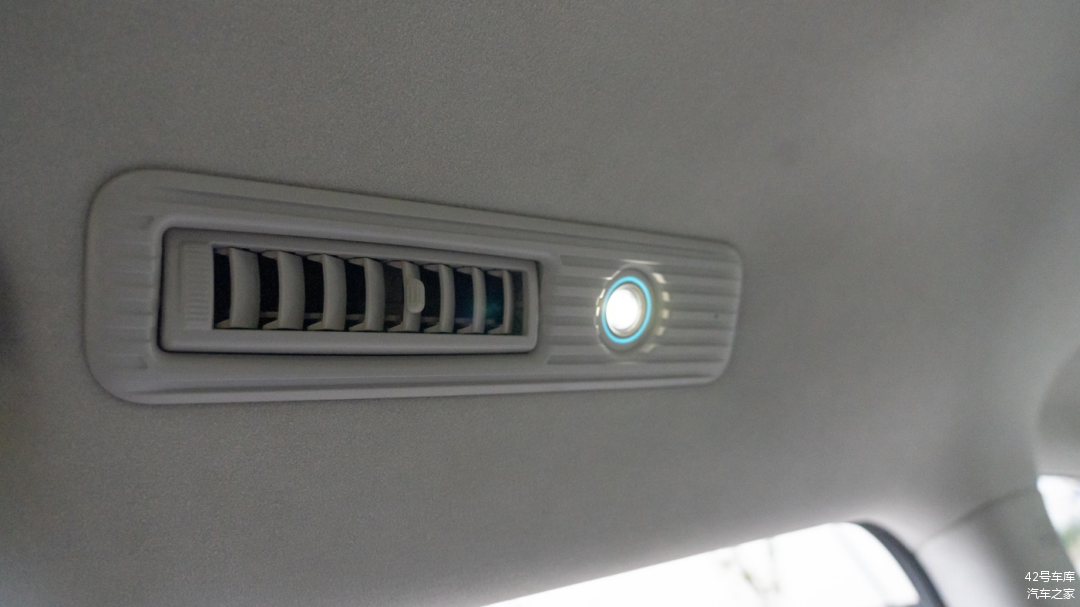 第二排的出风口在车辆两侧顶部,同样为物理调节,旁边是二排阅读灯。