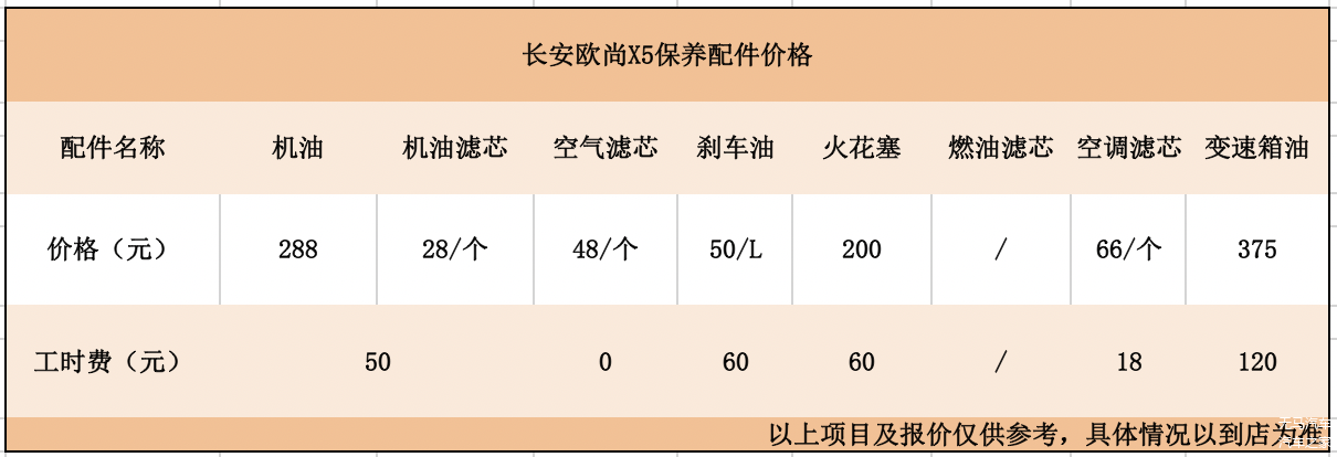 可以看到,欧尚X5的整体配件价格还是比较低的,总体符合它的身价展现,这对于整个保养价格的控制是有帮助的。