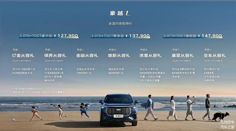 这个月12日,吉利 豪越L(图片 | 参数 | 询价)正式迎来上市,新车共推出了三款车型,售价区间为12.79万元—14.79万元,相比老款豪越L,从外到内都进行了全面优化,动力方面本次采用了2.0TD发动机。