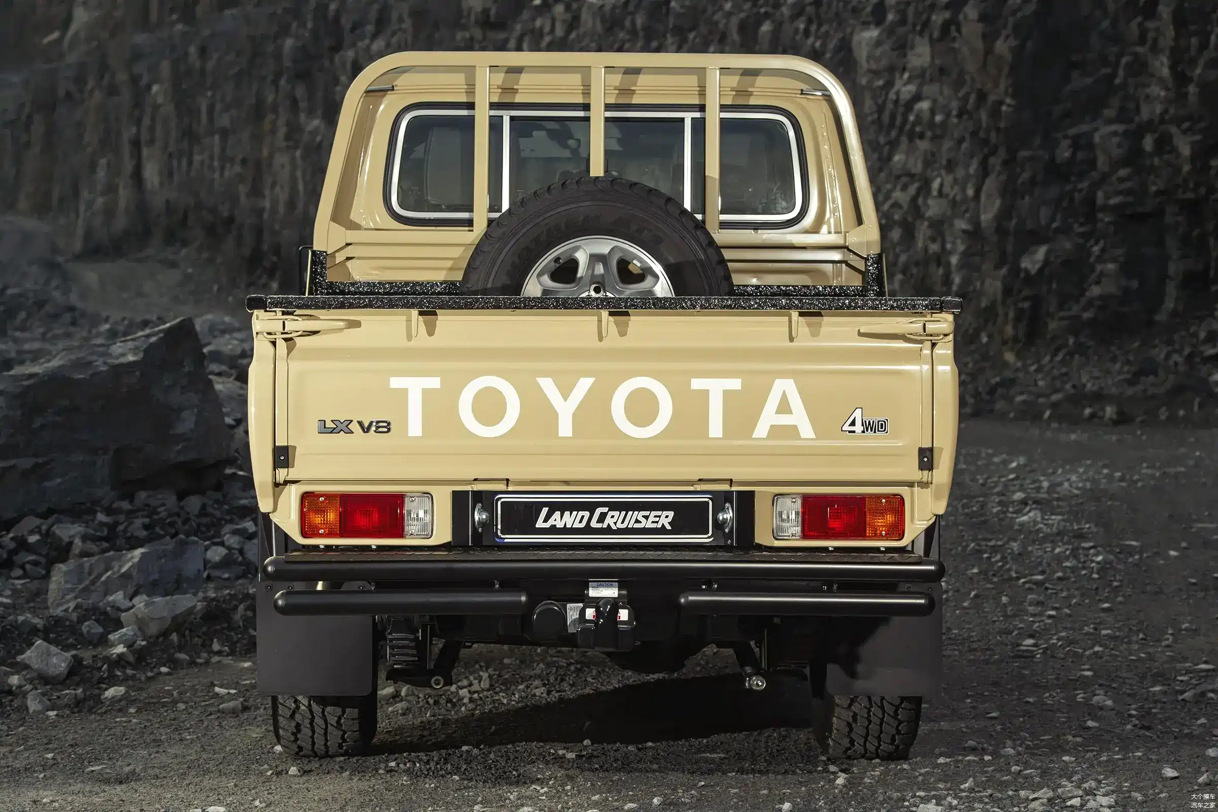 车尾部分,尾部配备了后保险杠以及后拖车钩设计,将越野气息展现得更加浓重,车尾配备了“TOYOTA”的硕大字母LOGO,辨识度非常高,整体造型设计看上去非常硬核。