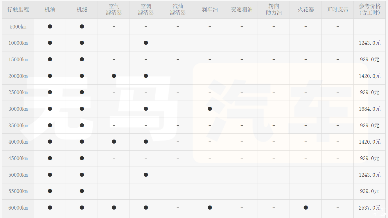 费用方面,首保免费,小保养费用939元,最贵的大保养费用2537元