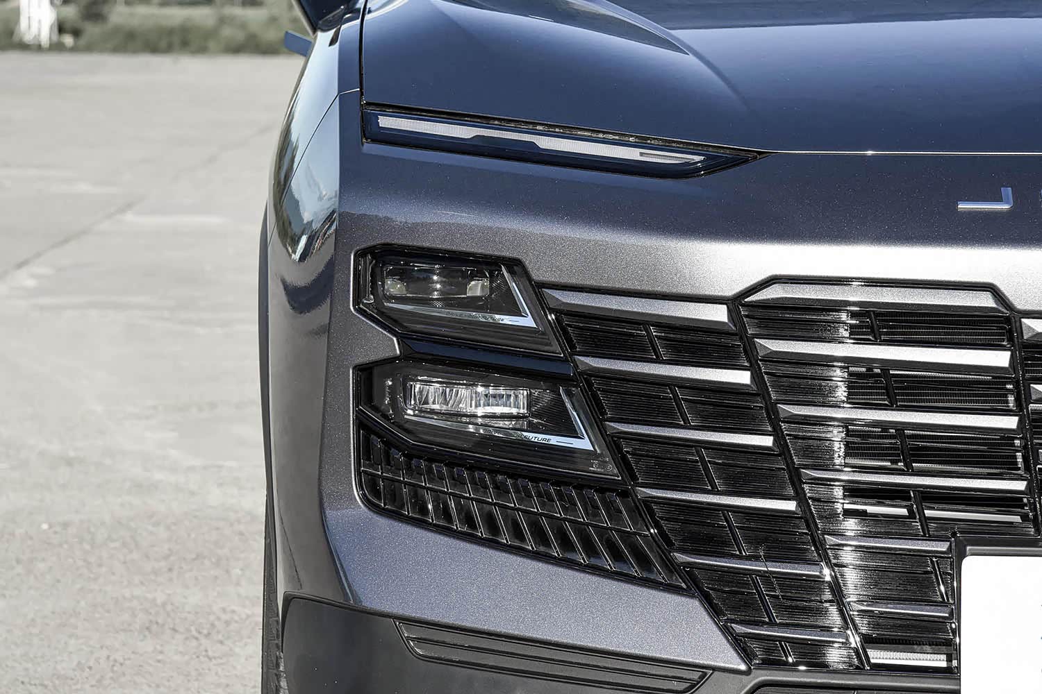 前脸方面,捷途大圣采用了无边界式格栅的设计,据悉这个格栅的设计灵感来自徽派建筑的特色之处——马头墙,视觉立体感很强。另外,它采用的分体式大灯组位于引擎盖上两侧,设计风格大胆时尚。LED日间行车灯与机器盖十分贴合,机器盖上方隆起的线条与日间行车灯配合的恰到好处,体现出了一定的力量感。