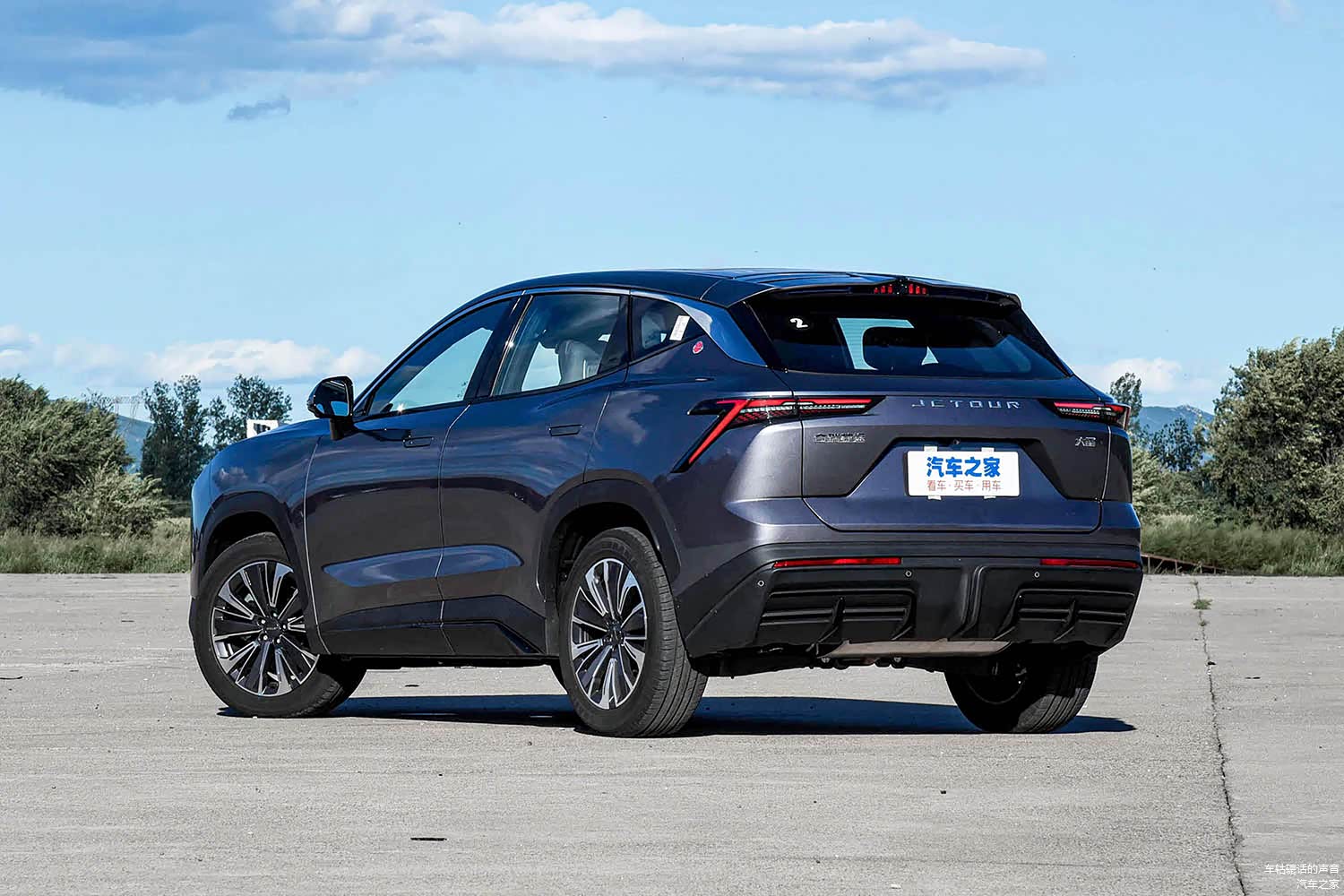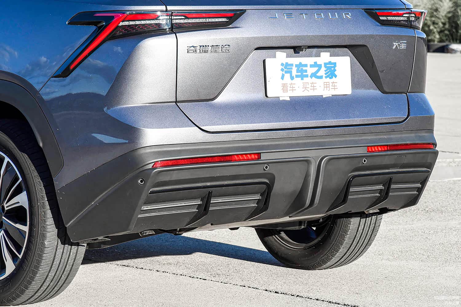 对于捷途大圣的尾部来说,它的尾部设计可以说是全车中最具个性化的,它采用了双边共四出的排气布局搭配机甲样式的尾部扩散器,车顶还配备了扰流板,进一步凸显运动氛围。从风格来看,捷途大圣的车尾风格与前脸相呼应。