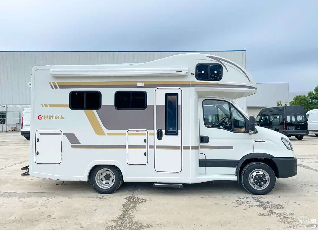 车辆基于依维柯底盘打造,动力方面搭载3.0T柴油发动机,最大功率为125kW,峰值扭矩为400N·m,满足国六排放标准。车侧配备有遮阳篷、伸缩踏步、铝合金自行车架、铝合金后登顶爬梯、行李舱等。