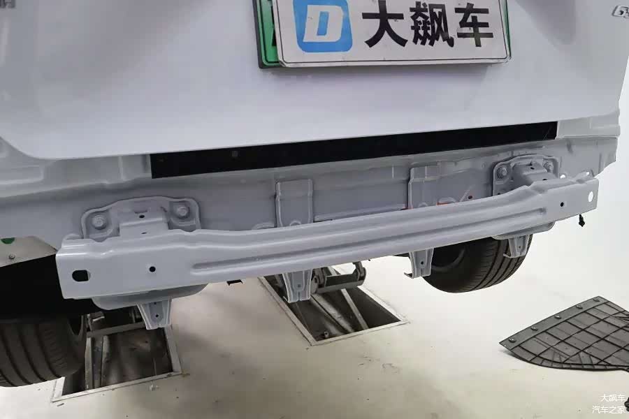 相比之下,这辆车的后防撞梁着实有些拉,仅仅是一个单层冲压钢板后防撞梁,厚度只有1.25毫米,而且还不是高强度的热成型钢,用手就能晃动。