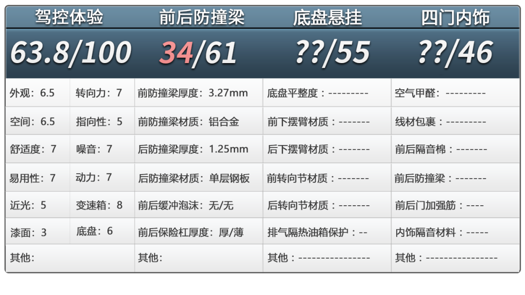 那么关于这辆车的底盘情况如何?还请继续关注后续的拆车内容。(本文及视频中的测量数据结论观点仅对此辆车负责,测量数据对公示的实验方法负责。)