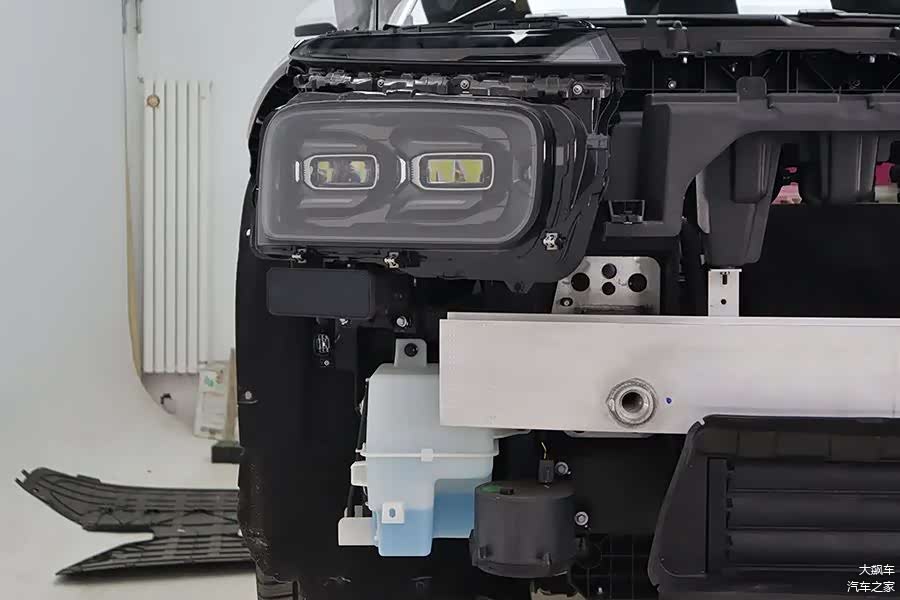 前防撞梁与保险杠之间,没有行人保护泡沫,对于一辆接近40万的车来说,有点儿拉。ACC毫米波雷达安装在前杠皮上,在正面碰撞时,有一定的缓冲区间。