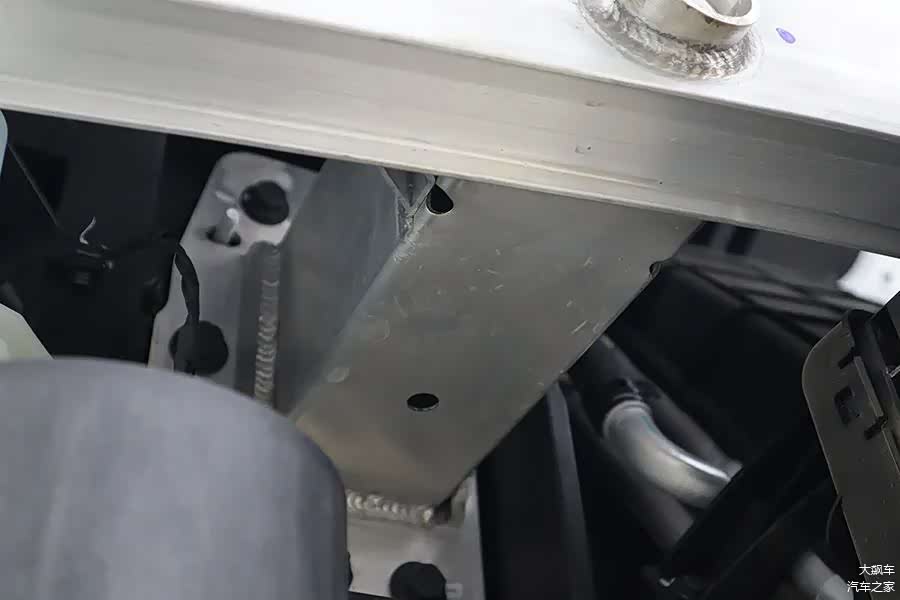 不过,结构设计还是有新意的,采用了环抱式副纵梁,除了能提高碰撞测试分数之外,在实际碰撞中也能最大程度的吸收撞击能量。后纵梁也进行了优化,设计了溃缩打孔和吸能盒,这样的安全设计,在其他车上几乎找不到。