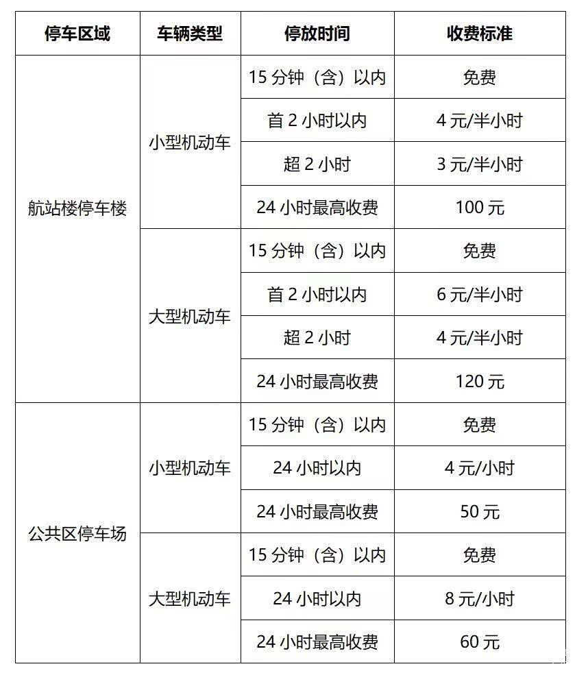 小型机动车:15分钟(含)以内免费,首2小时内,4元/半小时;首2小时后,3元/半小时。24小时最高收费100元。