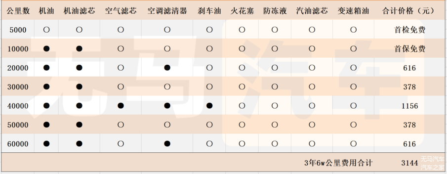 以最受关注的2.0L车型为例,新车在5000km时进行首检,10000km才开始正式保养。在3年6万公里的保养项目中基本都是油水、滤芯耗材的更换,因此单次保养价格并不算高,总费用为3144元,平均下来每年花费为1048元。需要注意的是,这个价格是撇除购买保养套餐或代金券的结果,倘若你能够“薅”到免费保养的羊毛,那凌放的保养成本还能再压一压。