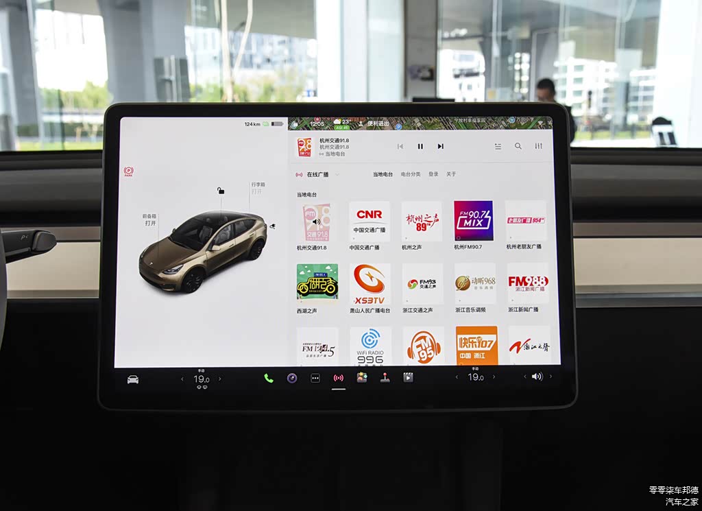内饰方面,新款Model Y保持了家族式风格造型,设计简洁,线条简单,车内几乎看不到实体按键的配备,也没有仪表盘出现,更多的功能还是要通过15英寸中控屏来实现,这也是特斯拉高度集成化制造体系的追求体现。当然,对于特斯拉的车厢造型设计,市场的评价始终形成了分化现象,如何取舍前卫感和以人为本的人性化考虑,这就看消费者的理解了。另外,这款中控屏也支持语音识别、车联网以及OTA升级等功能,不过调整方向盘和外后视镜等位置都需要进入屏幕最终得以实现,笔者个人觉得也太激进了些。