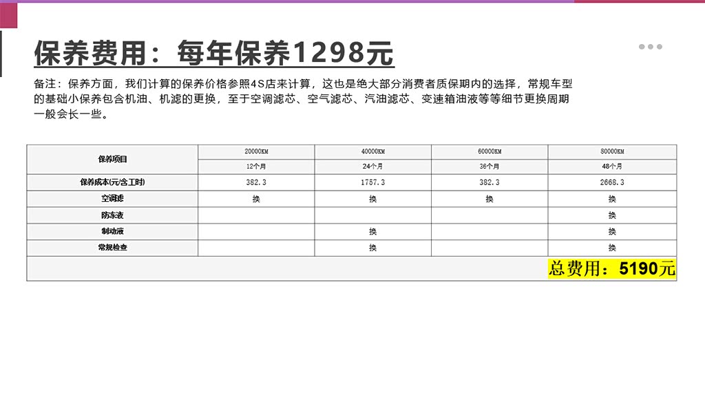 保养费用:1年保养费用1298元
