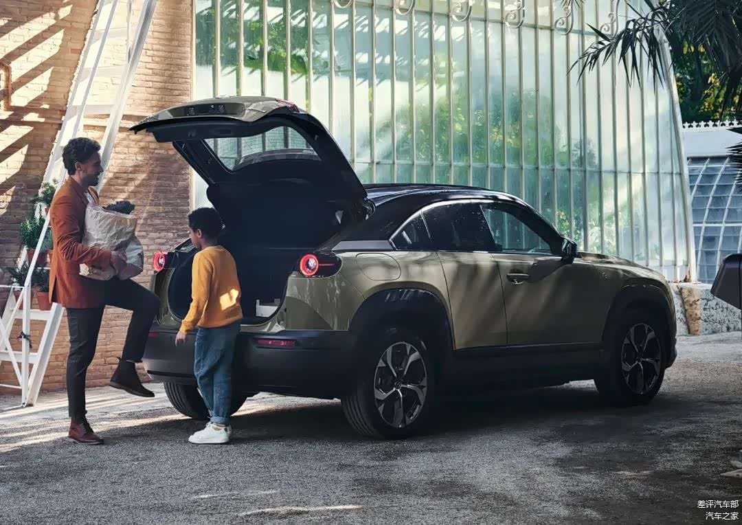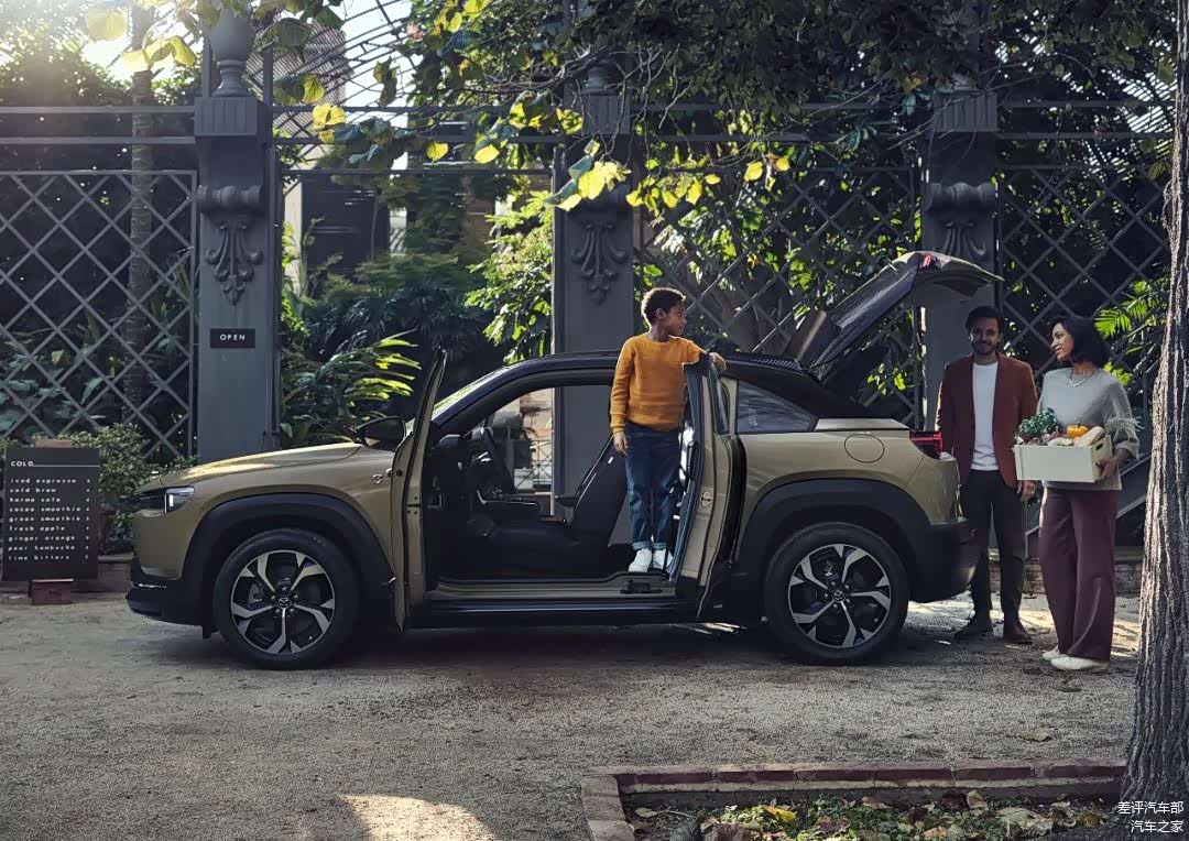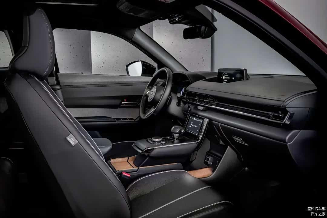 外观内饰跟之前的MX-30纯电版完全一样,定位城市小车,车内空间非常有限,最大的亮点是没有B柱,门是对开的。
