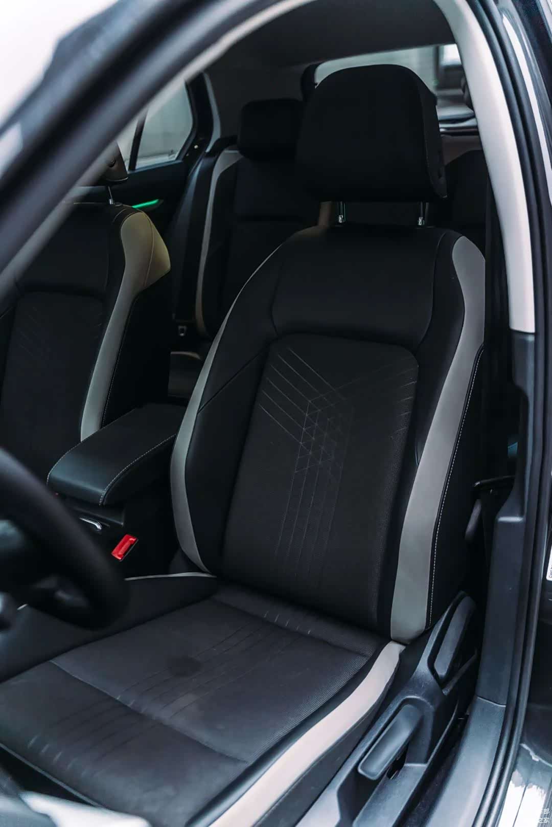但织物座椅确实比较难打理,很容易留下液体的污渍。如果你翻看配置表的话,高8全系都没有纯皮的座椅,高配是皮/翻毛材质混搭。