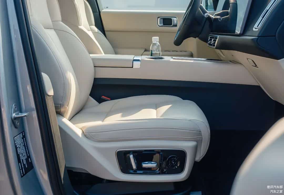 更极致的体验来自右后方座椅,皇后座。可以通过语音或者车机中的按钮一键开启皇后座模式,然后电动脚托会自动放下,前排座椅自动往前 —— 腿再长也可以伸直。