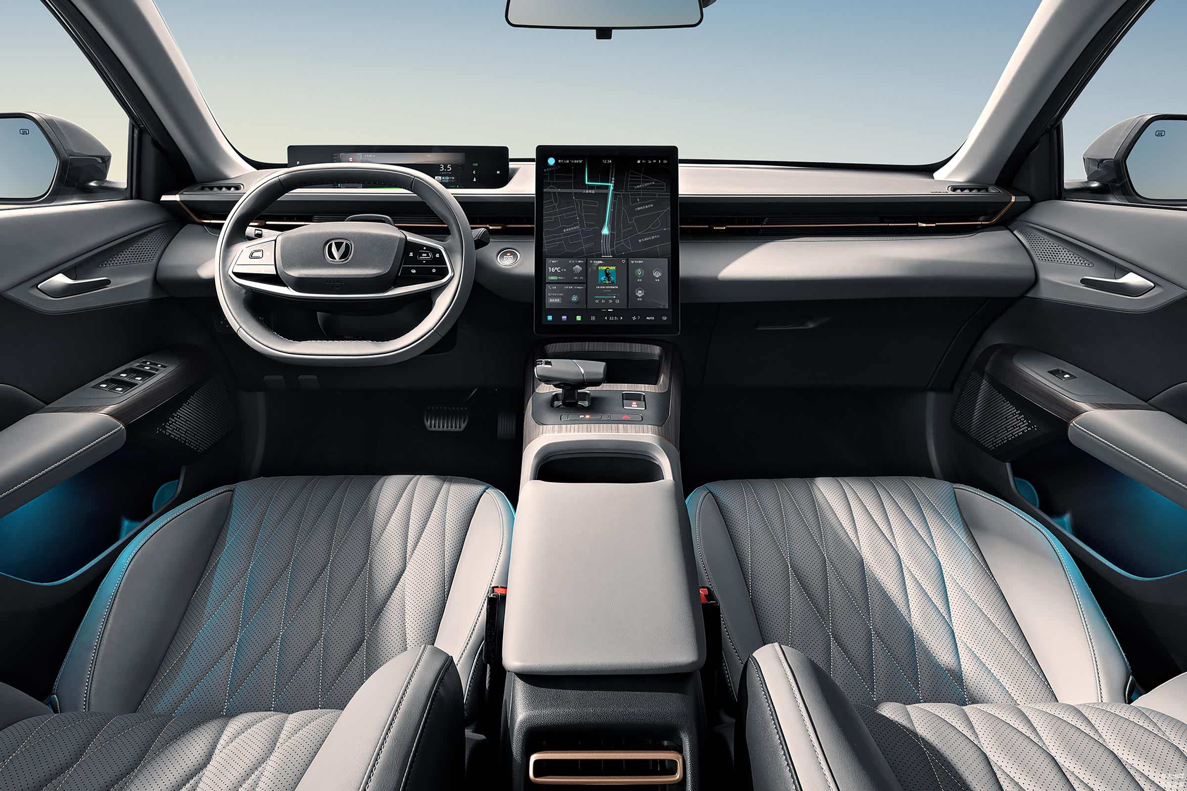 内饰方面,长安逸达的中控台集成贯穿式空调出风口设计,并采用平底双幅式多功能方向盘和悬浮式仪表屏的组合,至于大尺寸的中控屏则为纵向布局,整套配搭与当下的新能源汽车颇为相似,烘托出不错的科技氛围。