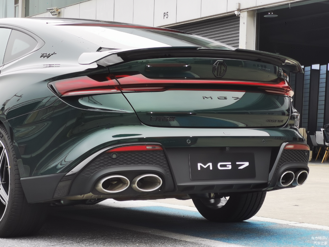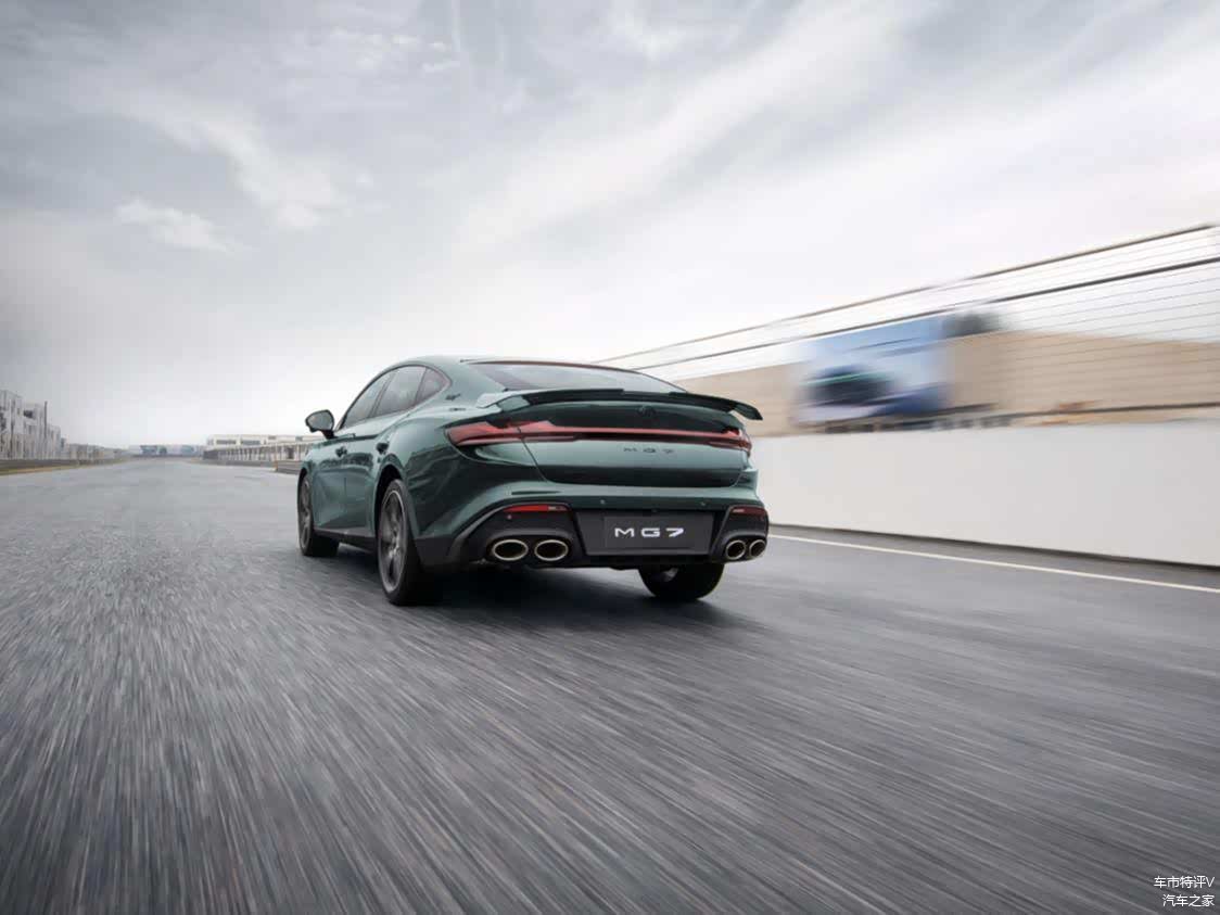 为了进一步营造新车的运动感,它还加入了很多运动设计元素,比如全车无框车门设计,与车身融为一体,让驾驶视野更开阔。此外,车尾巨大的扩散器设计、双边四出真排气以及最大的外观卖点三段式电动尾翼等彰显运动的元素,让新车运动感瞬间提升,诸多刺激年轻人肾上腺的设计元素,也让MG7的运动感瞬间拉满。