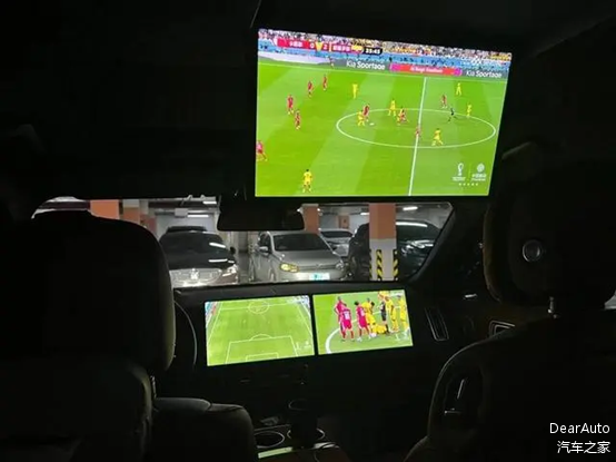 世界杯期间,有车主坐在车内看球赛。