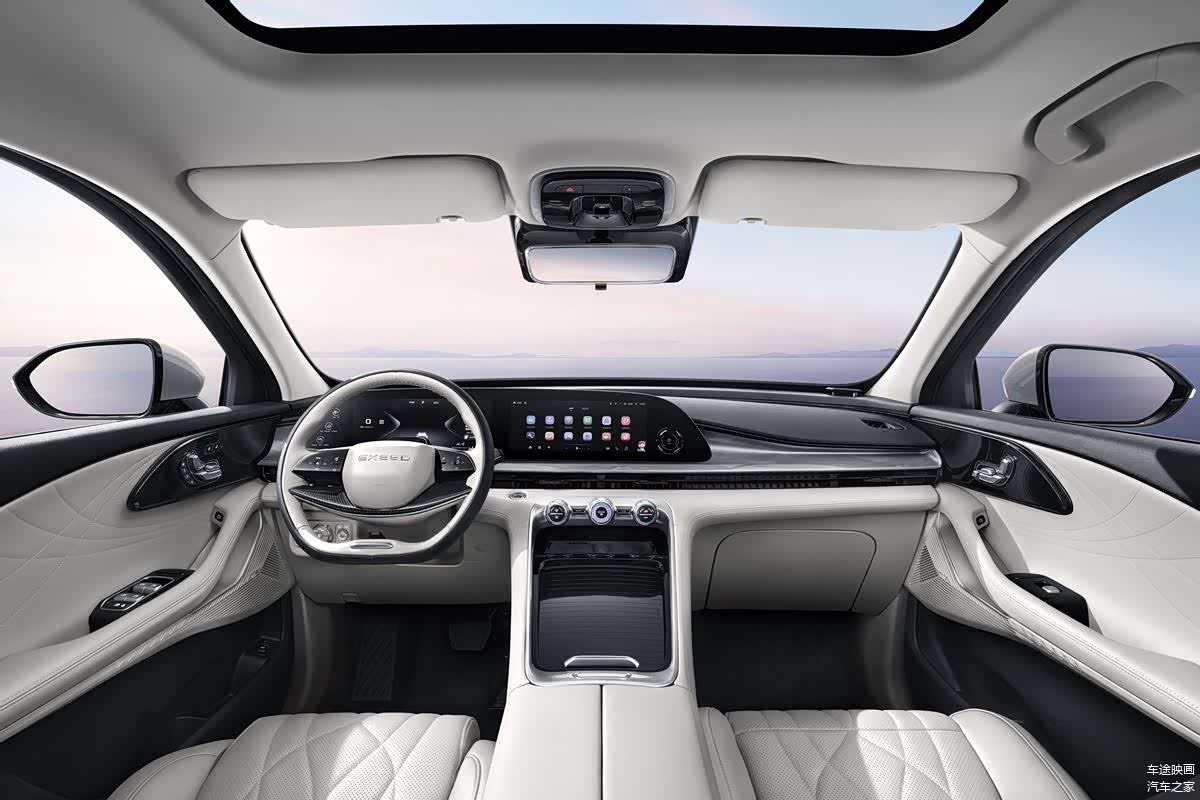 外观方面,前脸设计非常科幻,采用了封闭式的格栅设计,它的前包围采用了无边框的开口设计,内部中网由从小变大的菱形构成,同时与车身采用一体色的设计,LED大灯横贯整个前脸,并与两侧的日行灯形成一个整体的效果。