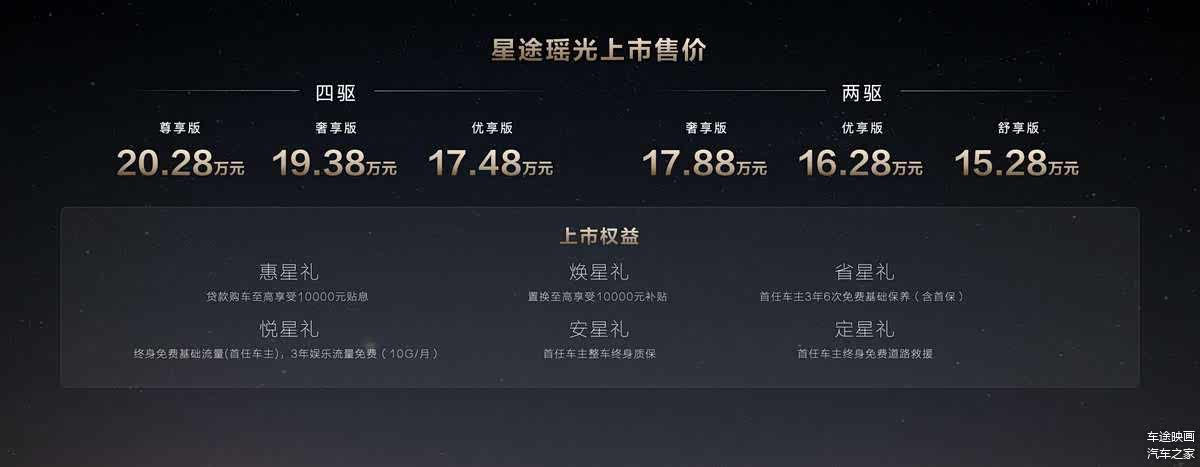 作为星途品牌2.0阶段的首款战略车型,星途遥光可以说汇集了奇瑞最新的技术成果,售价区间为15.28-20.28万元的瑶光拥有强悍的产品力表现。借用最近很火的一个梗:我觉得星途瑶光稍微出手,便已经是这个分段的极限了,你见过几个20万左右,一言不合就给你安排电磁悬架的SUV?确实,星途瑶光带来了足够的诚意,我们也期待着这款新车能够带来更好的市场表现。