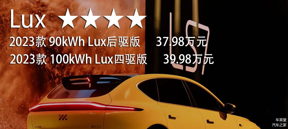 接下来是Lux版本,从这个版本开始搭载100kWh电池组,同样有后驱和四驱版本,动力与Elite一样,不过CLTC纯电续航变为660公里和625公里,两款车售价也分别达到了37.98万元和39.98万元。多出的5万元除了电池升级,配置上还升级了22英寸轮毂、全车电吸门、方向盘加热、真皮座椅、更丰富的第二排座椅电动调节、第二排座椅加热/通风/按摩、三温区自动空调、香氛,提供高级驾驶辅助升级、豪华座椅和24喇叭扬声器选装。但从配置上的变化看多花的5万元性价比并不是特别高,如果你很在意纯电续航后驱版是较为合适的选择。