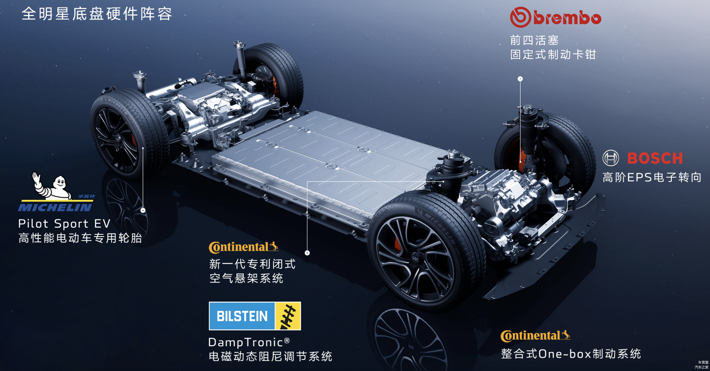 性能部分,智己LS7有后置单电机和前后双电机两种布局,前者最大功率250kW,峰值扭矩475牛·米,后者最大功率425kW,峰值扭矩725牛·米,一共90kWh和100kWh两种容量的三元锂电池,CLTC纯电续航从550-660公里不等,充电26分钟可以拥有400公里续航。底盘部分,前为双叉臂式独立悬架,后为多连杆式独立悬架。硬件部分也体现了智己的诚意,标配空气悬架,刹车、阻尼控制、轮胎、制动系统等也均为一线大厂品牌,经过威廉姆斯的调教后拥有不错的动态表现。