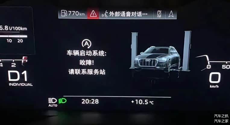 3月13日中午,北京的丁女士驾驶奥迪A6 Allroad车型行驶到四方桥附近时突发电力系统故障,行驶途中整车断电,目前已送至一汽奥迪4S店进行维修。故障诊断为48V电机系统损坏,但电机缺货,具体更换时间待定。
