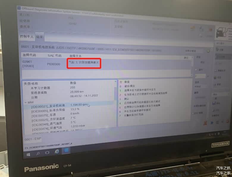 2020年3月,王先生购买了一台奥迪A6 Allroad,自2022年11月开始,缺缸故障就频繁发生。3月6日,在4S店维修车间,经过奥迪官方维修技师对行车电脑故障数据读取发现,王先生的奥迪A6 Allroad已发生了11次缺缸故障。