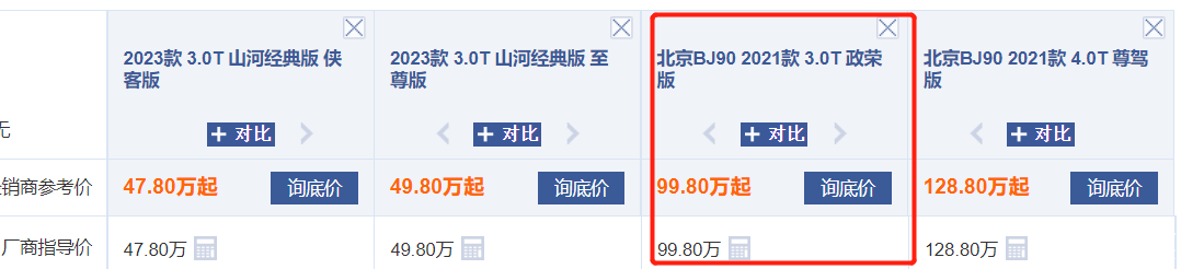 据网上流传消息,最近北京越野BJ90的3.0T政荣版(2021款)目前不到30万元的价格就可以提车。要知道,该车官方指导价可是99.8万元,如果传言是真的话,这等于降价超过70万元,相当于打了3折。