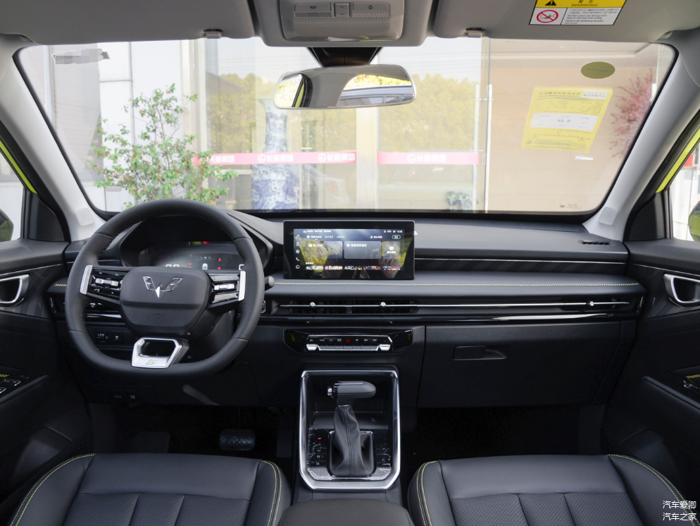 外观颜值方面,五菱星驰提供了双拼色车身设计,不仅有黑色的前护板、侧裙、轮眉以及后保险杠,而且车顶也采用了黑色涂装,辨识度非常高。大面积黑化的中网和大灯相连,增加了视觉上的宽度,中网还加入了“S”标识的点缀,精致的同时还彰显了运动属性。同时,车尾还配备双边两出的圆形排气口与扩散器,使得整车更显运动范。