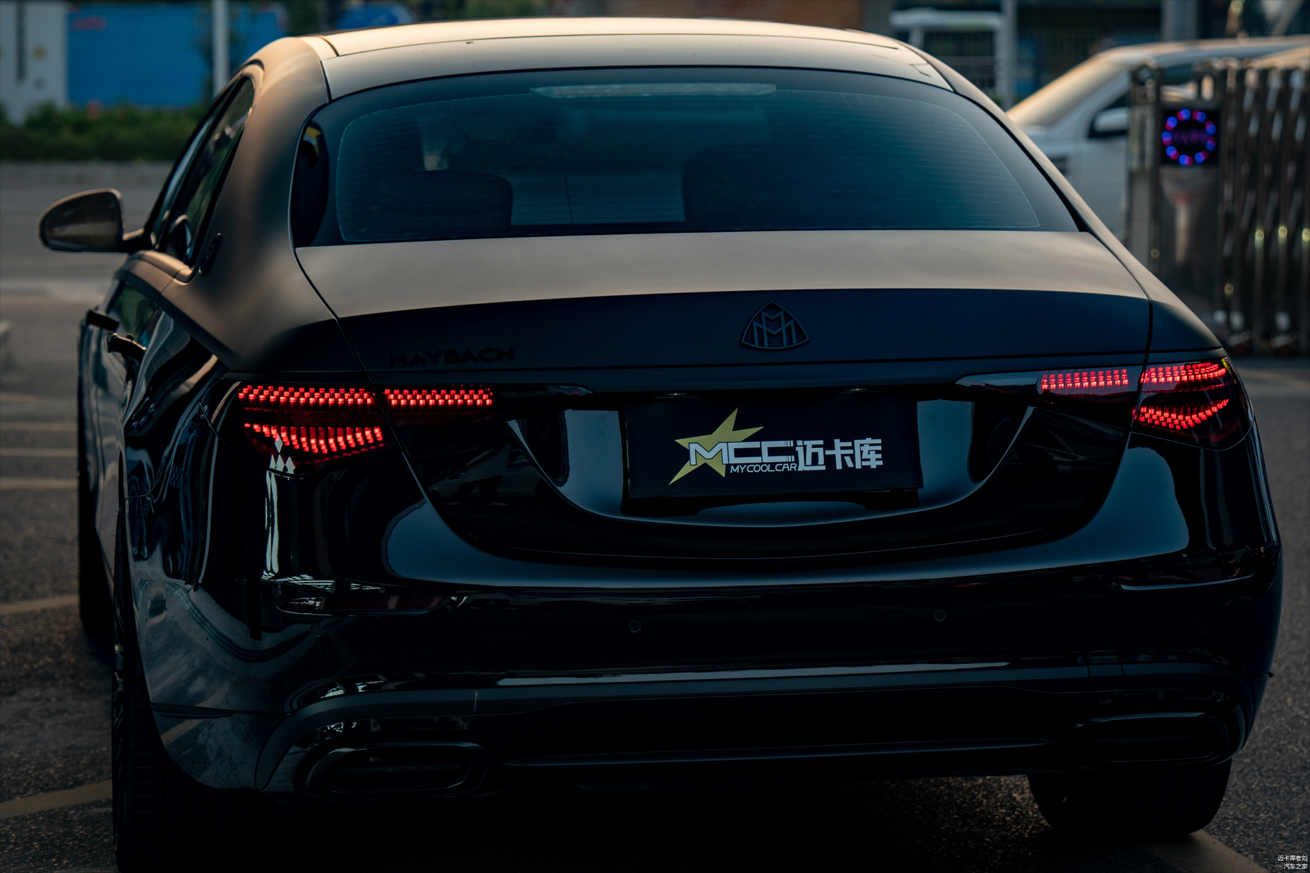 后尾箱的字标和迈巴赫标也都改成了亮黑的,全车黑化到底。