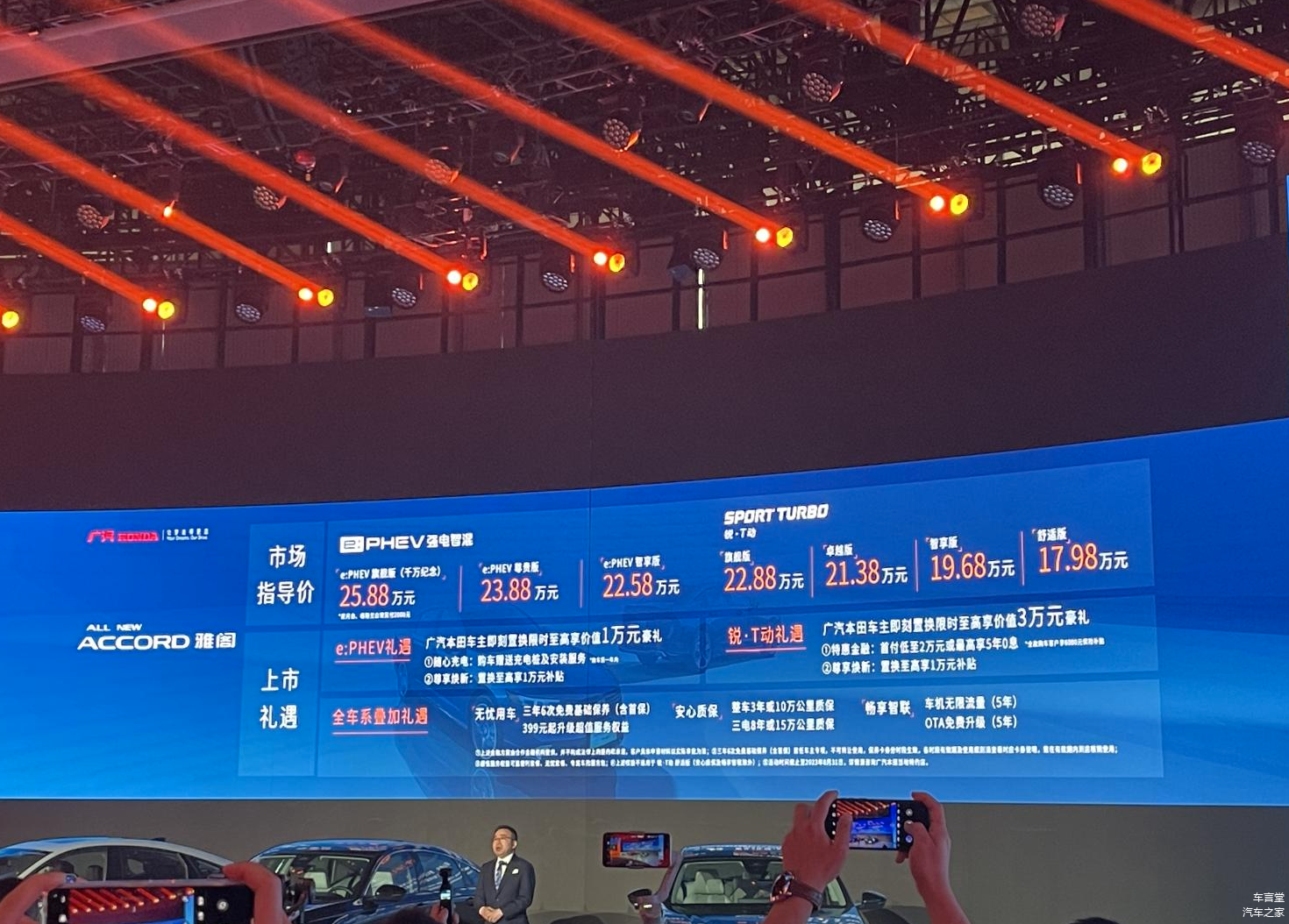 5月20日,广汽本田发布了新一代 雅阁(图片 | 参数 | 询价),本次共推出7款车型,售价区间17.98-25.88万元,第十一代国产雅阁除了提供1.5T发动机燃油版车型外,还提供2.0L插电混动版车型,而这款车也取代了之前的油电混动车型。