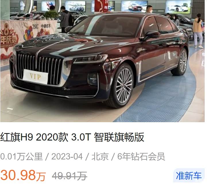 不过虽然这款中大型车优点不少,不过保值率却一般,比如红旗H9 2020款 3.0T 智联旗畅版,上市至今还不到2年时间,当时的指导售价为49.91万元,而如今的二手车价格在31万左右,这么短时间内就跌去近20万元。