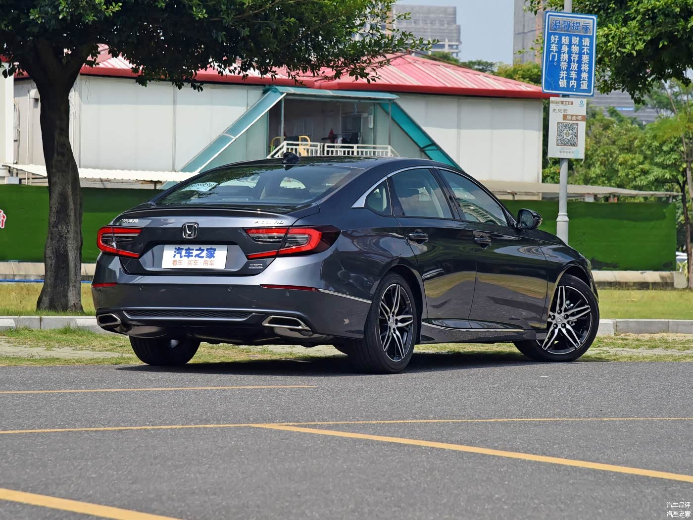 在外观方面,雅阁采用的是家族式的设计理念,相比老款车型在细节方面做出了改变,前脸采用大尺寸的镀黑式格栅设计,内部中网面积相比老款增加了一点,看起来辨识度不错,粗壮的银色镀铬饰条贯彻整个专属车标,两侧的雾灯采用熏黑式处理,增加了整车的时尚感,两侧的大灯组同样是羽翼式造型,内部换装精致的光纤式LED灯源,看起来挺漂亮的。
