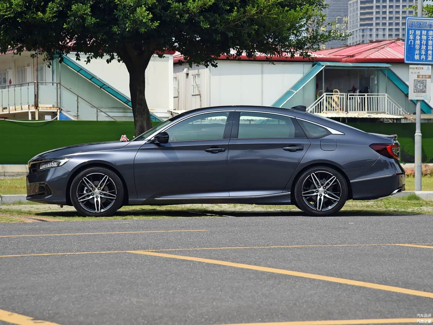 车身侧面采用细腻的腰线进行点缀,有种动感的美,下方银色镀铬饰条一直延伸至车尾,拉长了整车的视觉感,A、B、C柱则采用熏黑式的处理,并且在车窗边缘加入了银色镀铬亮条,看起来显得精致,并且搭配了下方双五辐式的运动轮毂,使整个车身更加年轻时尚。雅阁的尺寸长宽高分别为:4908mm、1862mm、1449mm,轴距为2830mm。