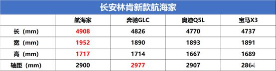 全新一代航海家的车身长、宽、高分别为4908*1952*1717mm,轴距2900mm,属于中型SUV中较大的水平。整体上比它的2022款车型大了一圈,要略优于同级的奔驰GLC,奥迪Q5L和宝马X3。